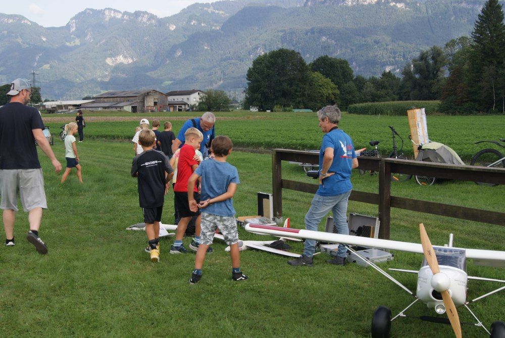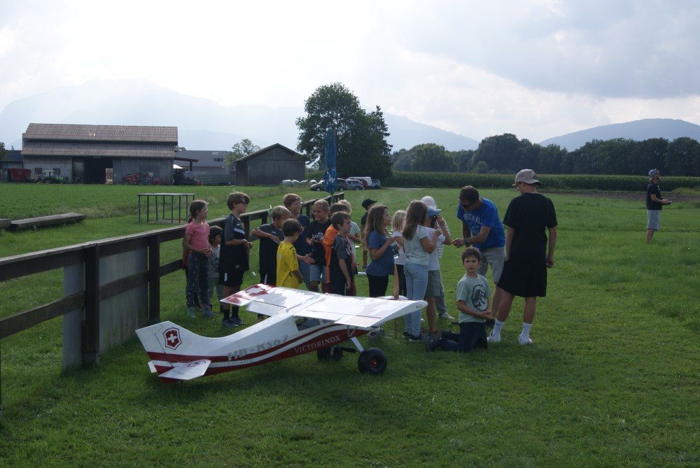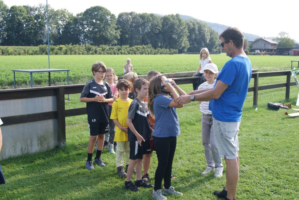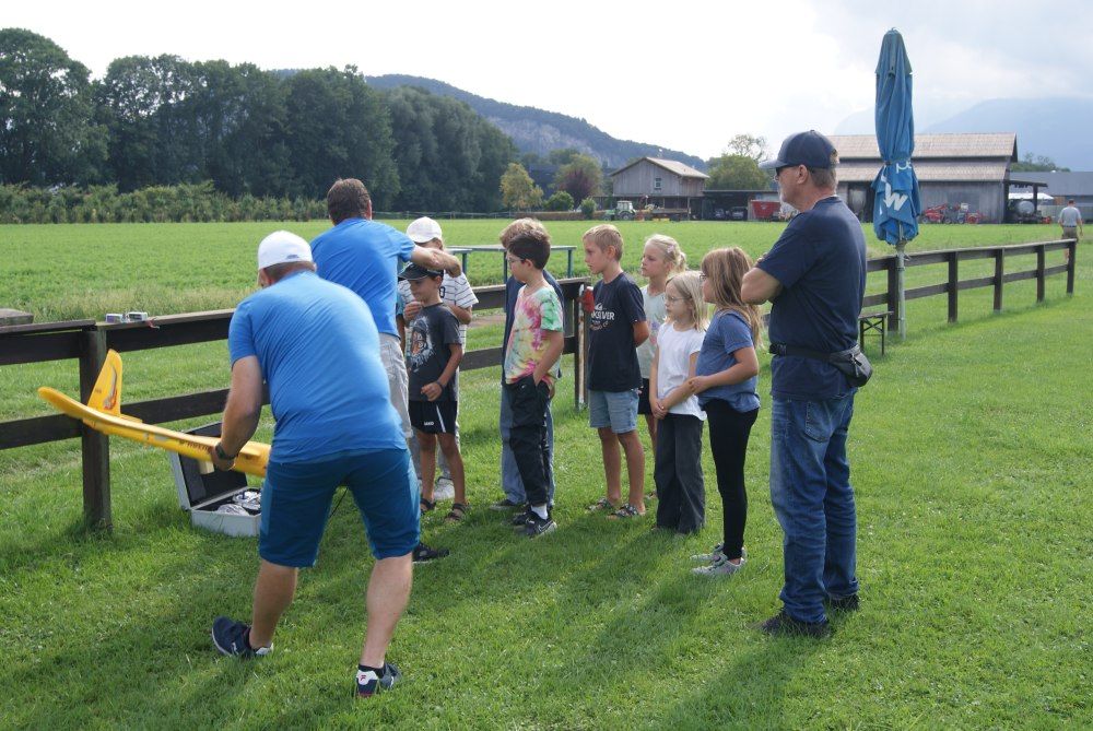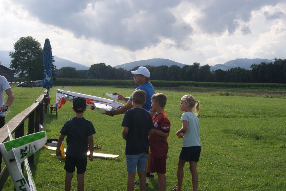 Einer der immer wieder bei den Kindern attraktiven Veranstaltungspunkte ist der Besuch bei den Modellfliegern des MFV-Altach. Auch heuer 2025 war dort alles bestens organisiert und vorbereitet. Vom Obmann Helmut Mathis wurden alle ca. 30 Kinder die Online angemeldet waren begrüßt. Die Elternteile blieben teilweise vor Ort, andere holten Ihre Schützlinge später gegen 19:00 Uhr wieder ab. Start war 16:00 Uhr.