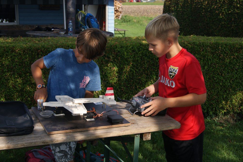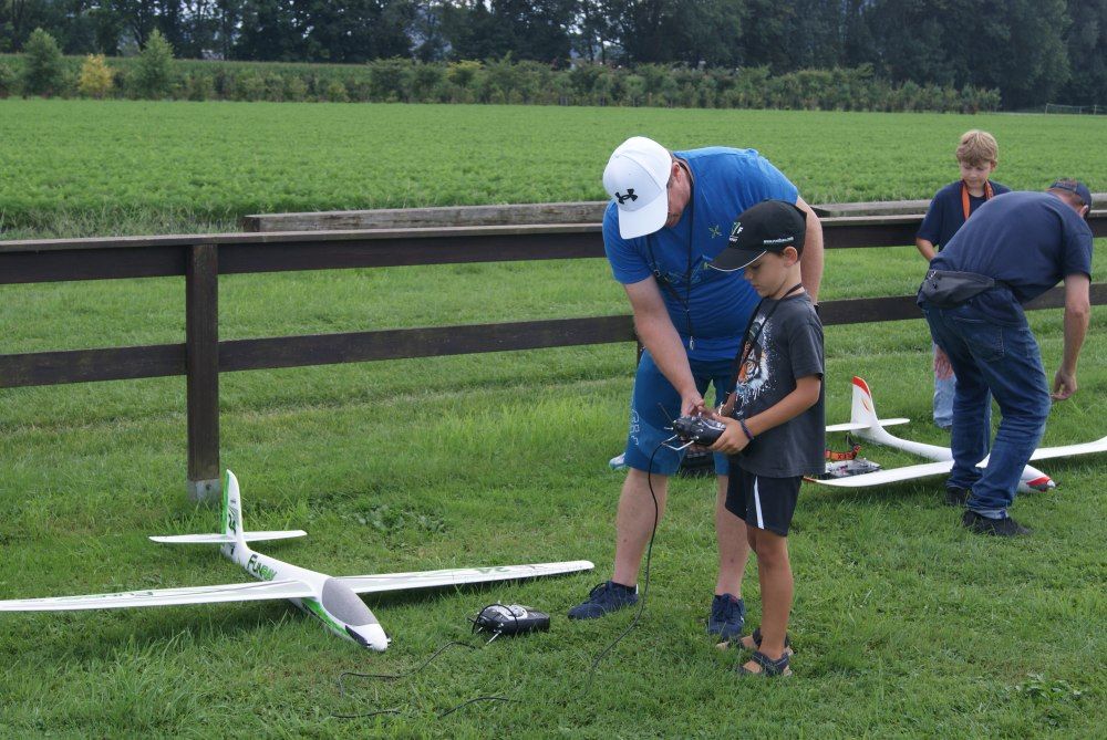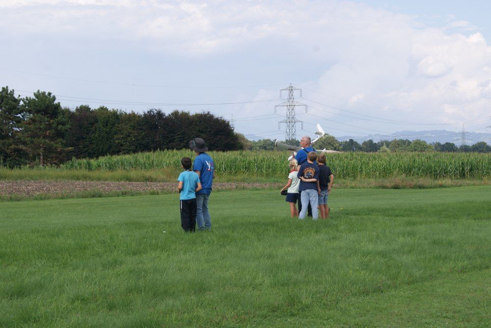 Es gab auch schon mal die eine oder andere Außenlandung. Vielen der Kinder gelang es aber in kürzester Zeit die zur Verfügung gestellten Modelle (Segelflugzeuge mit Elektroantrieb) stilgerecht selbst in der Luft zu bewegen.