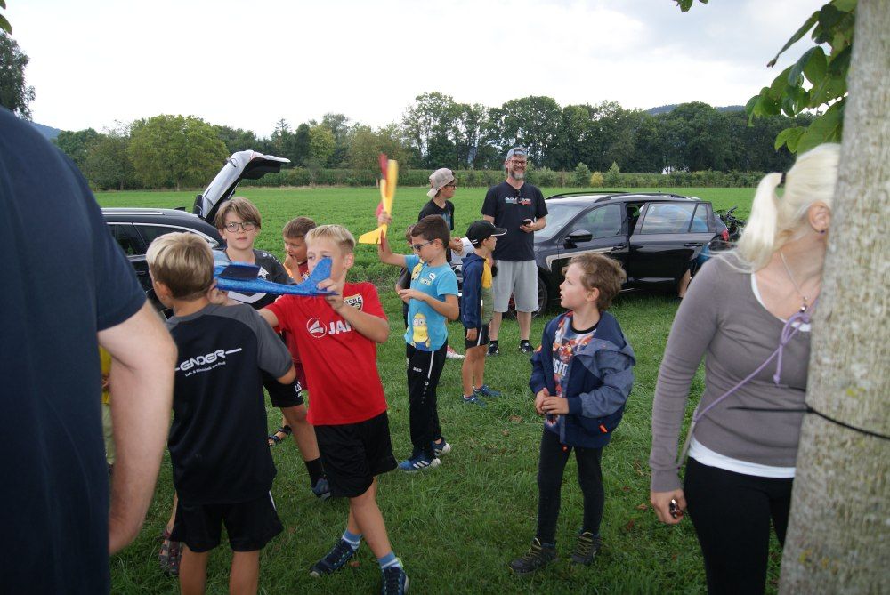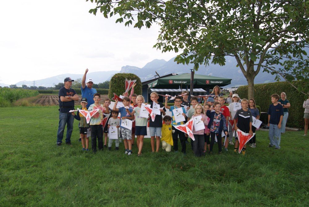 Es gab auch einen Wettbewerb mit Wurfseglern. Nur wenn der optimale Winkel beim werfen gefunden wurde, konnten wirkliche Strecken erreicht werden. Unter fachkundiger Hilfe und guten Tipps der Modellflieger des MFV-Altach dann, gelang es schlussendlich wirkliche allen einen schönen Streckenflug zu absolvieren.
